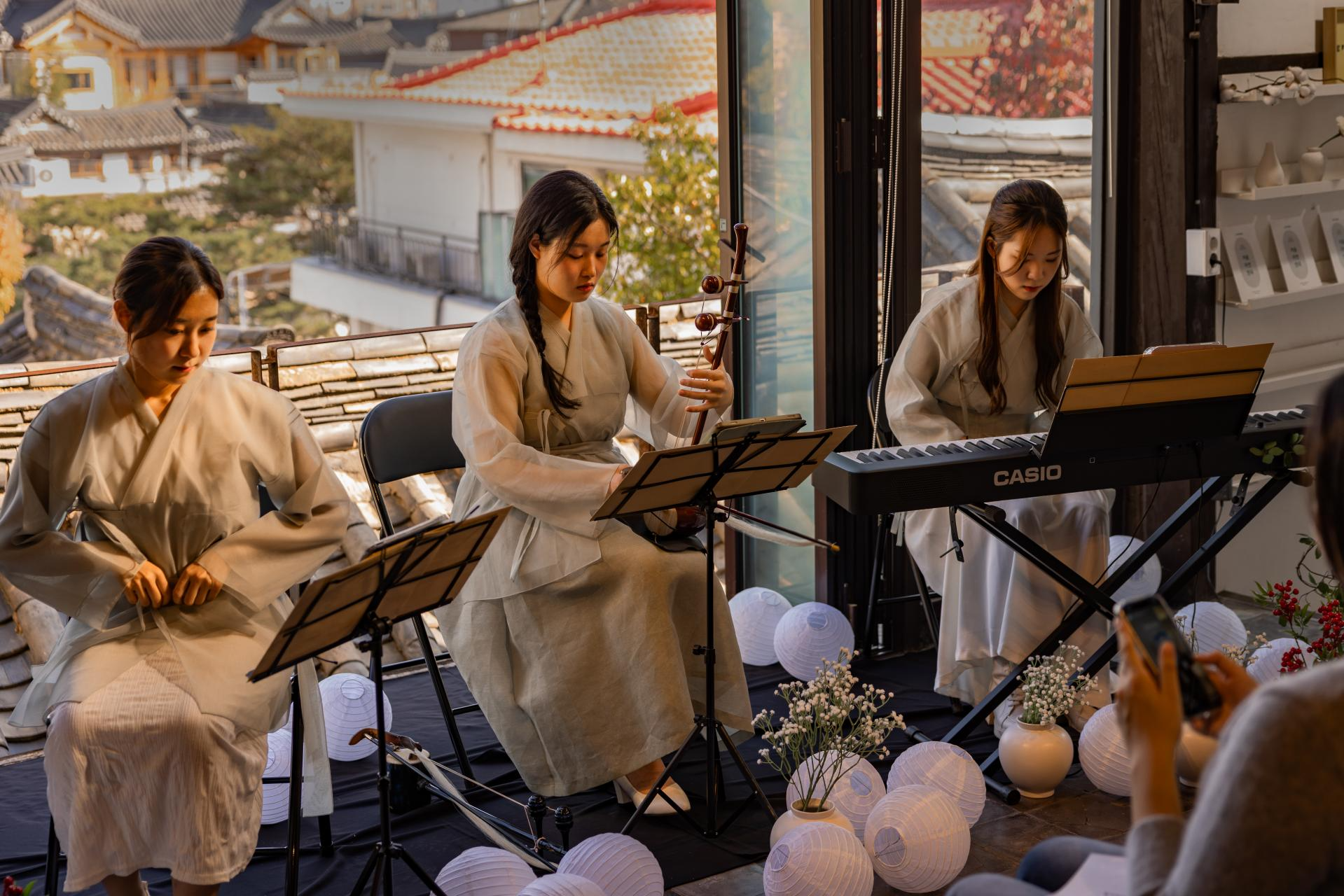 They play a wide range of Korean traditional music, from scholars to commoners of the Joseon Dynasty, and convey the elegant yet strong spirit of Korea. The harmonious melodies of the warm and gentle haegeum and daegeum, and the piano that gently comforts, create a comfortable and relaxing Hanok concert.